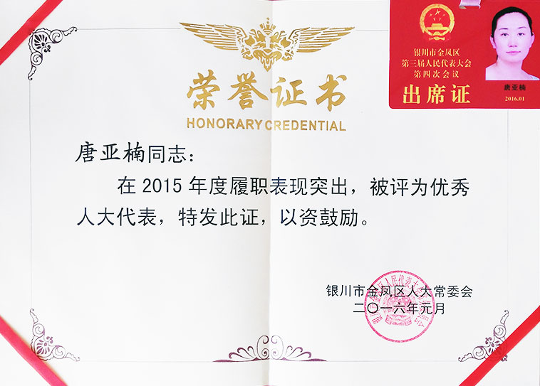唐亞楠總經(jīng)理被評(píng)為金鳳區(qū)三屆人大優(yōu)秀代表