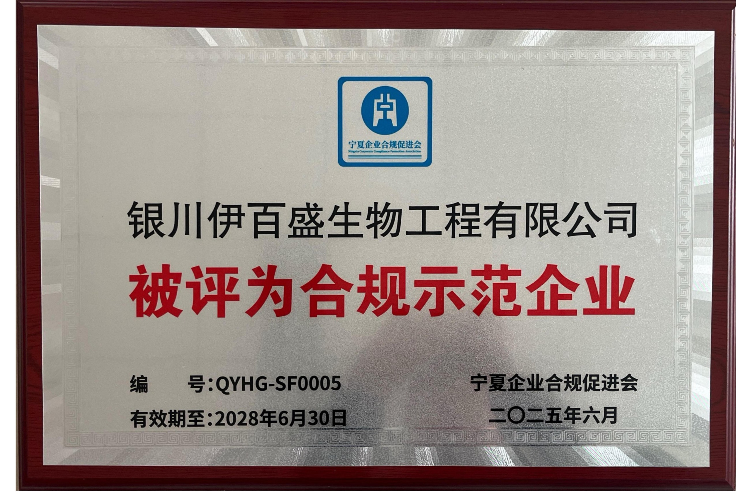 銀川伊百盛被評(píng)為合規(guī)示范企業(yè)