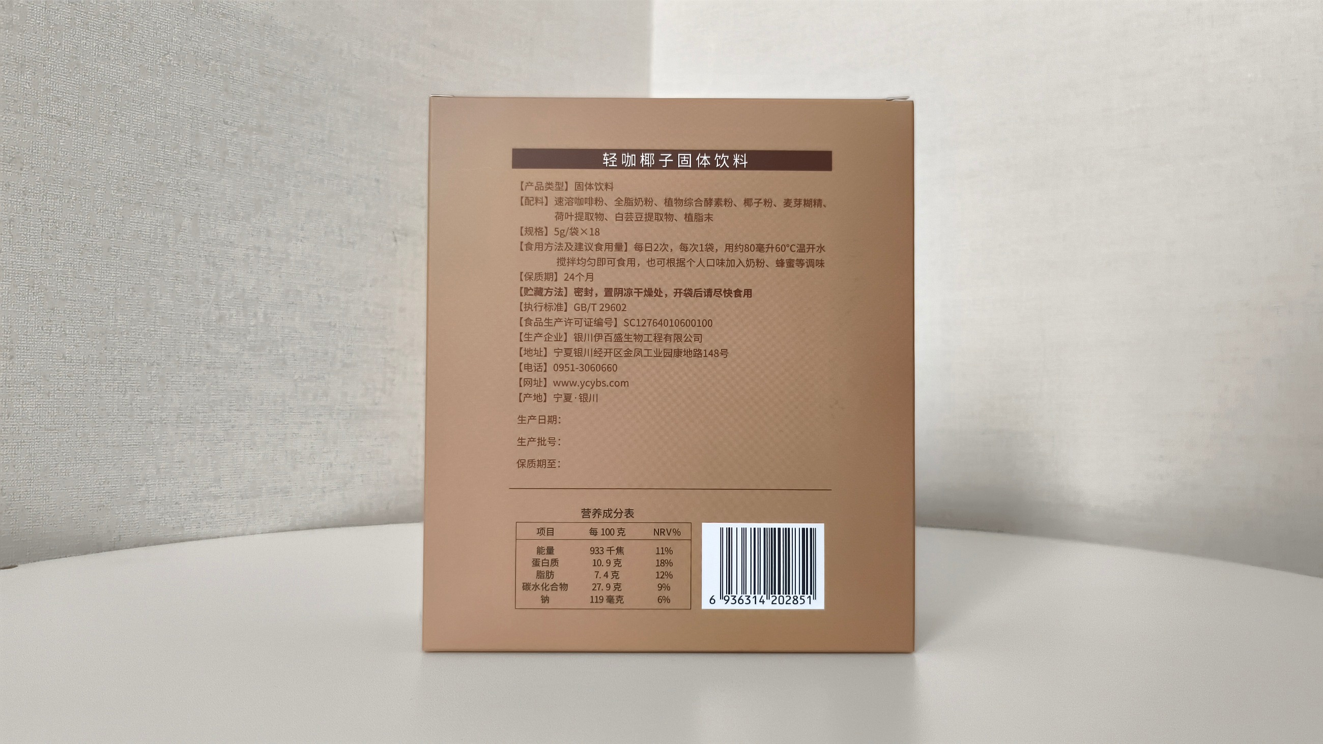 【配料】速溶咖啡粉、全脂奶粉、植物綜合酵素粉、椰子粉、麥芽糊精、荷葉提取物、白蕓豆提取物、植脂末