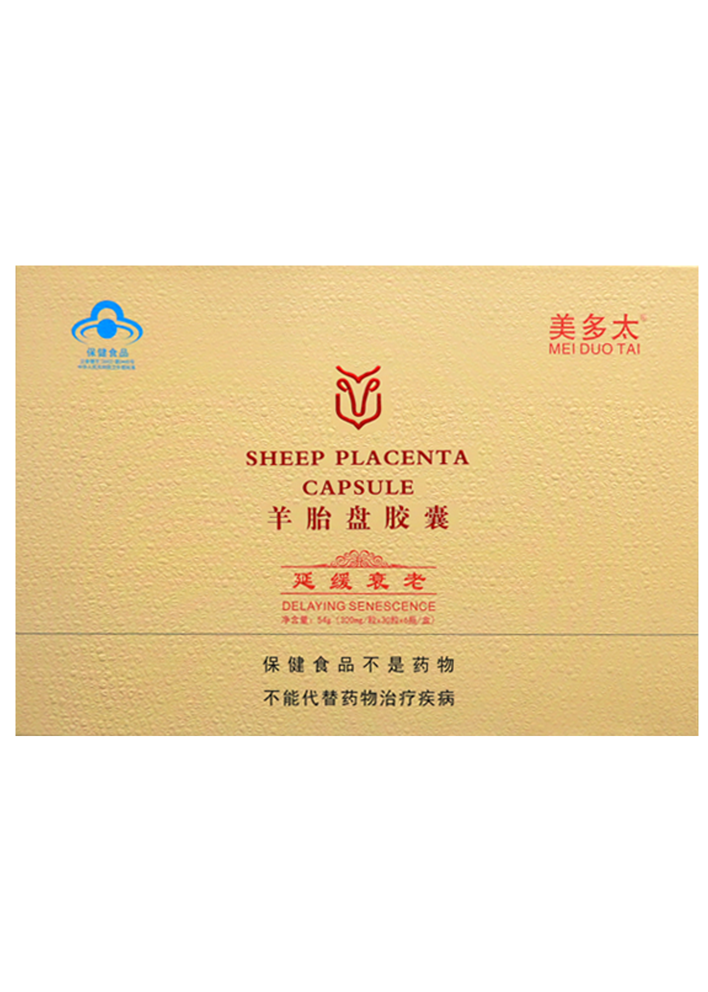 本品是以羊胎盤(pán)、淫羊藿、菊花、紅花為主要原料制成的保健食品,經(jīng)功能試驗(yàn)證明,具有延緩衰老的保健功能。